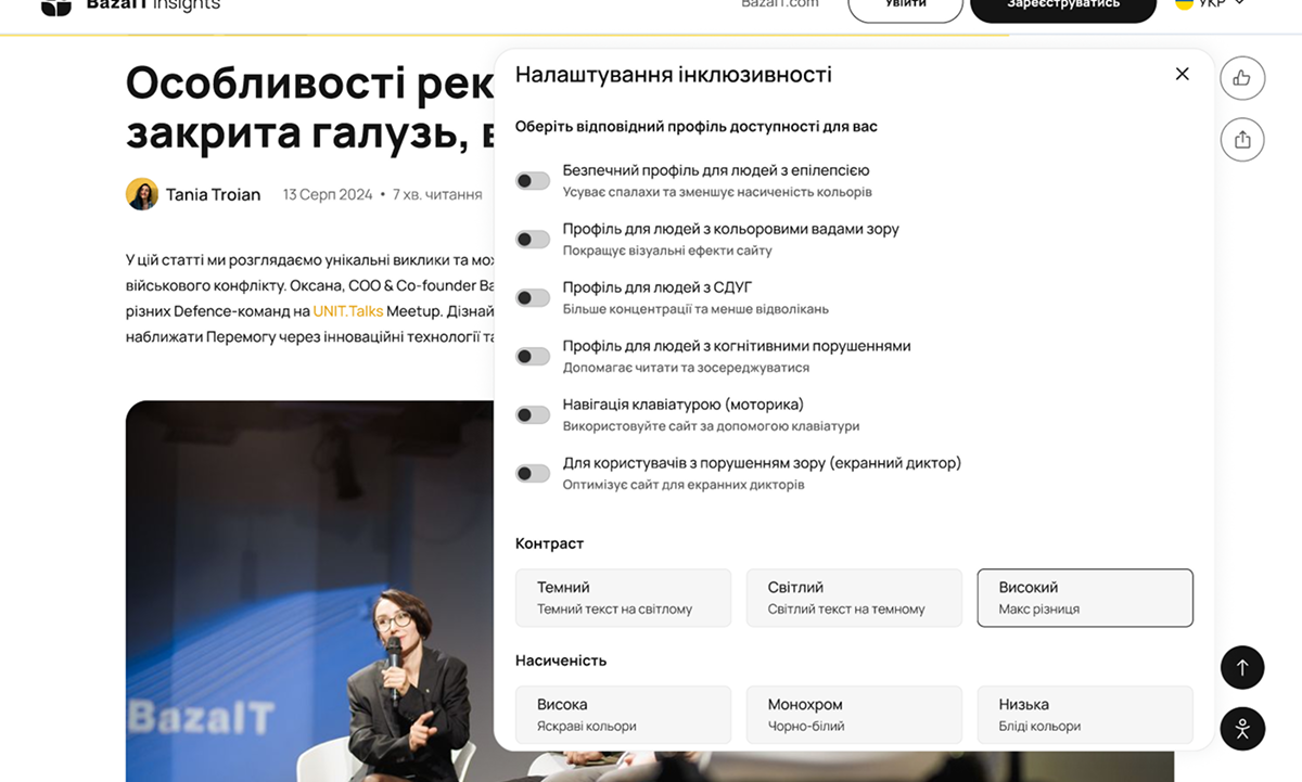 We ensured high accessibility on our page, with articles featuring clear navigation, reading progress tracking, diverse content formats, downloadable resources, related content, and inclusive features such as a focus mode to support users with ADHD.